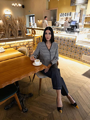 Полоска — это классика, которая не подводит. Она отлично подходит как для деловых встреч, так и для прогулок по городу. Мягкая, женственная и универсальная — она легко сочетается с разными вещами, делая образ свежим и гармоничным.
