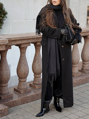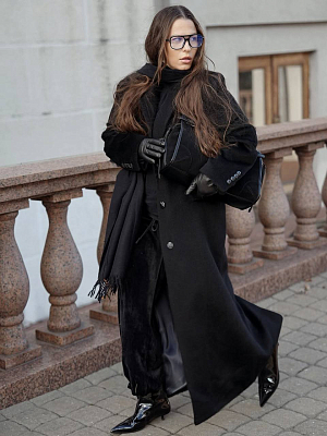Пальто 1-189-1 — строгий силуэт, мягкая драпировка, идеальная посадка. Основа, вокруг которой строится вся магия.